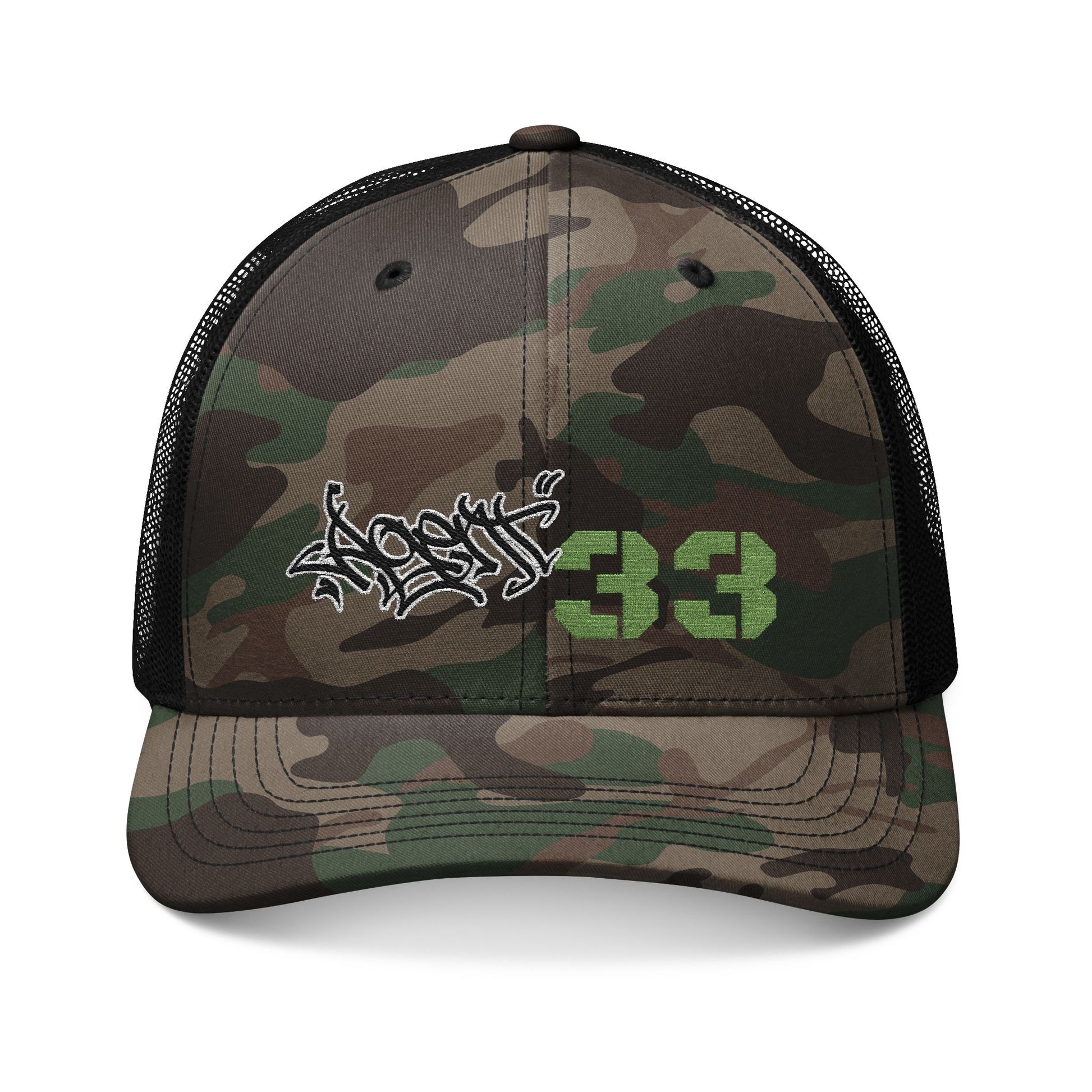 Camouflage Trucker Hat — Embroidered Graffiti '83 Military Cap